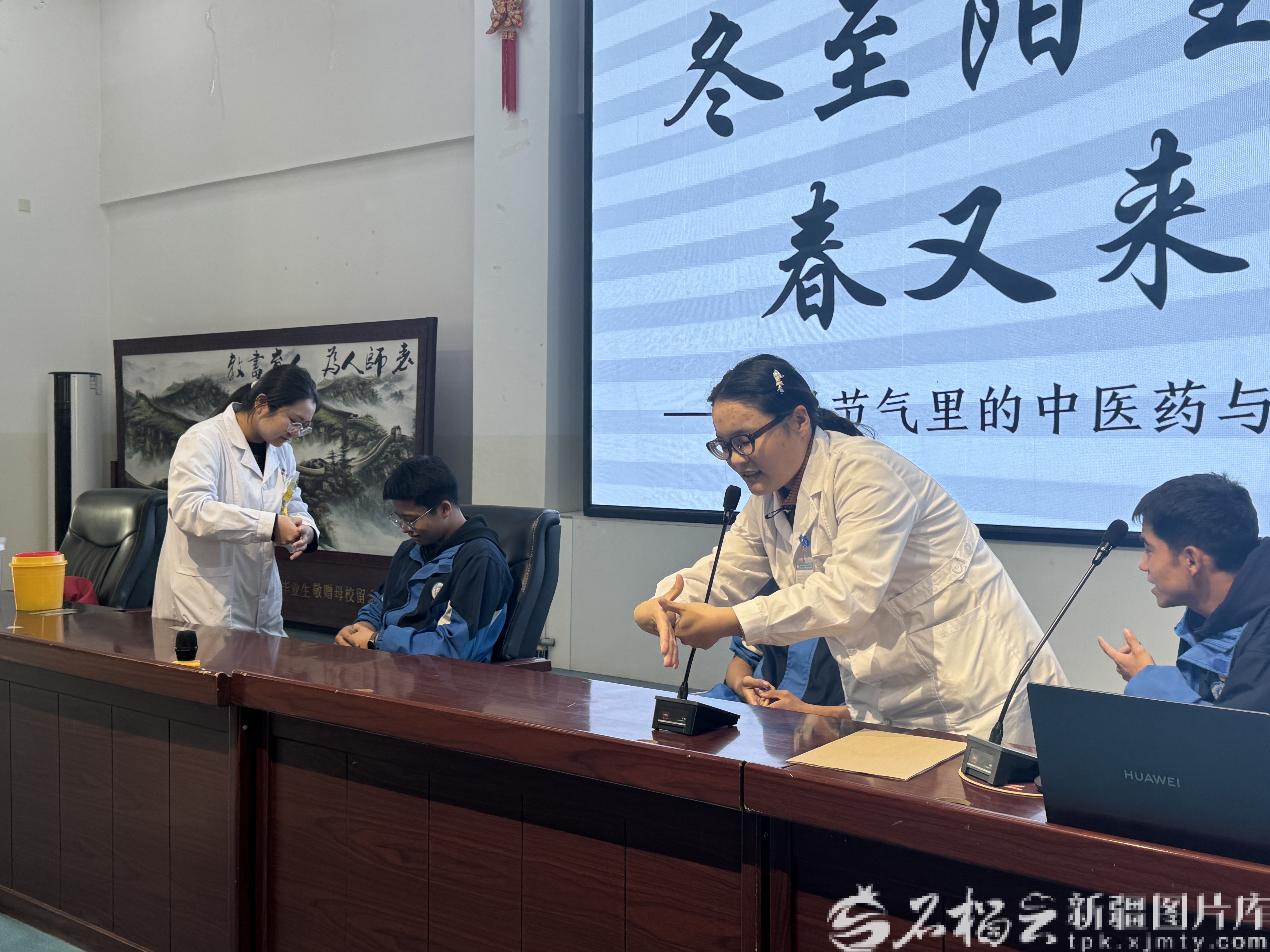在沙雅县第二小学,王柯教孩子们用菊花泡茶;在沙雅县第四小学,她带学生们认识合谷穴缓解头痛;在沙雅县第三中学,她把《黄帝内经》里春生夏长的道理讲给学生们听。中医药文化,就这样从书本里“走”了出来,变成孩子们能摸到、闻到、体验到的生活智慧。