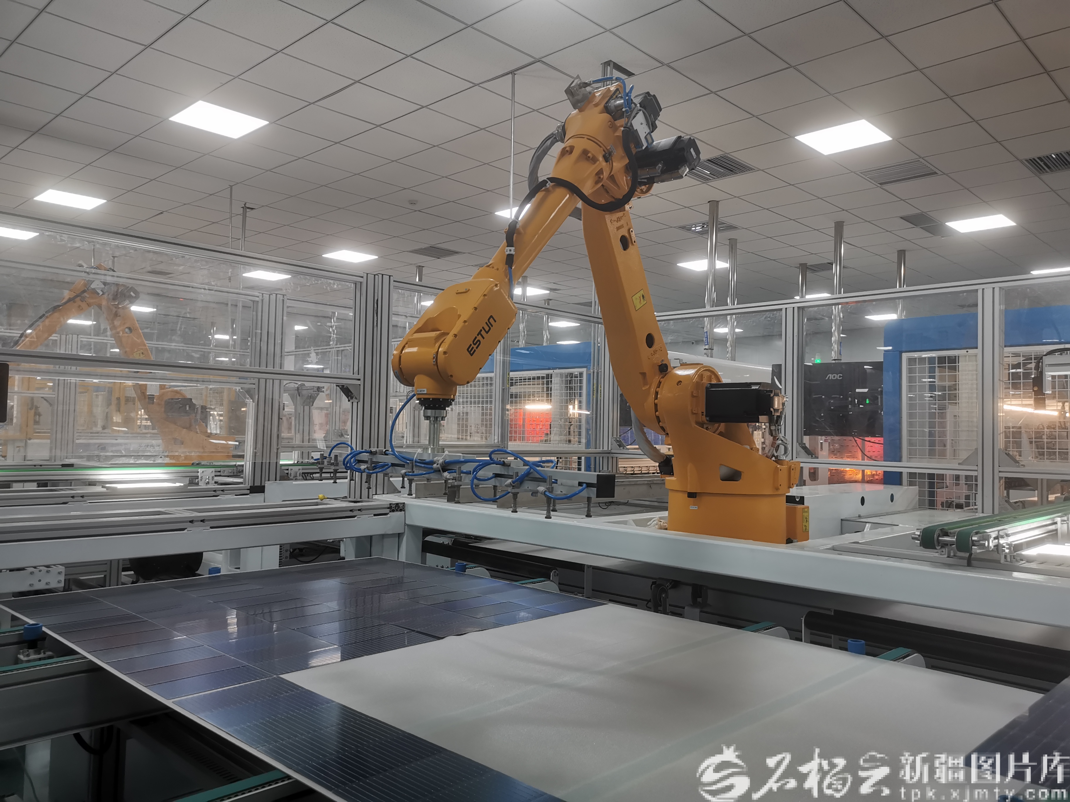 3月18日,位于石河子经济技术开发区的新疆天富天耀新能源科技有限公司生产线在生产太阳能光伏板。通讯员 晏瑞一摄