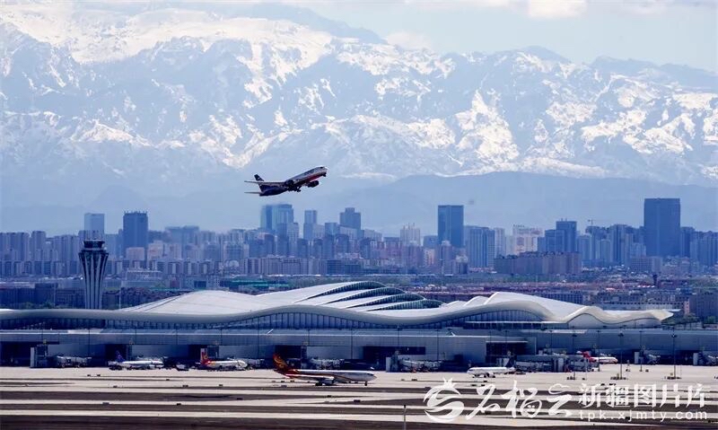 2025年4月17日,一架飞机从乌鲁木齐天山国际机场北航站区起飞。当日,该国际机场北航站区启用试运行,乌鲁木齐国际航空枢纽建设跃上新台阶,具备年旅客吞吐量4800万人次、货邮吞吐量55万吨、飞机起降36.7万架次的保障能力,为新疆打造亚欧黄金通道和向西开放桥头堡增添新动能。王志清摄