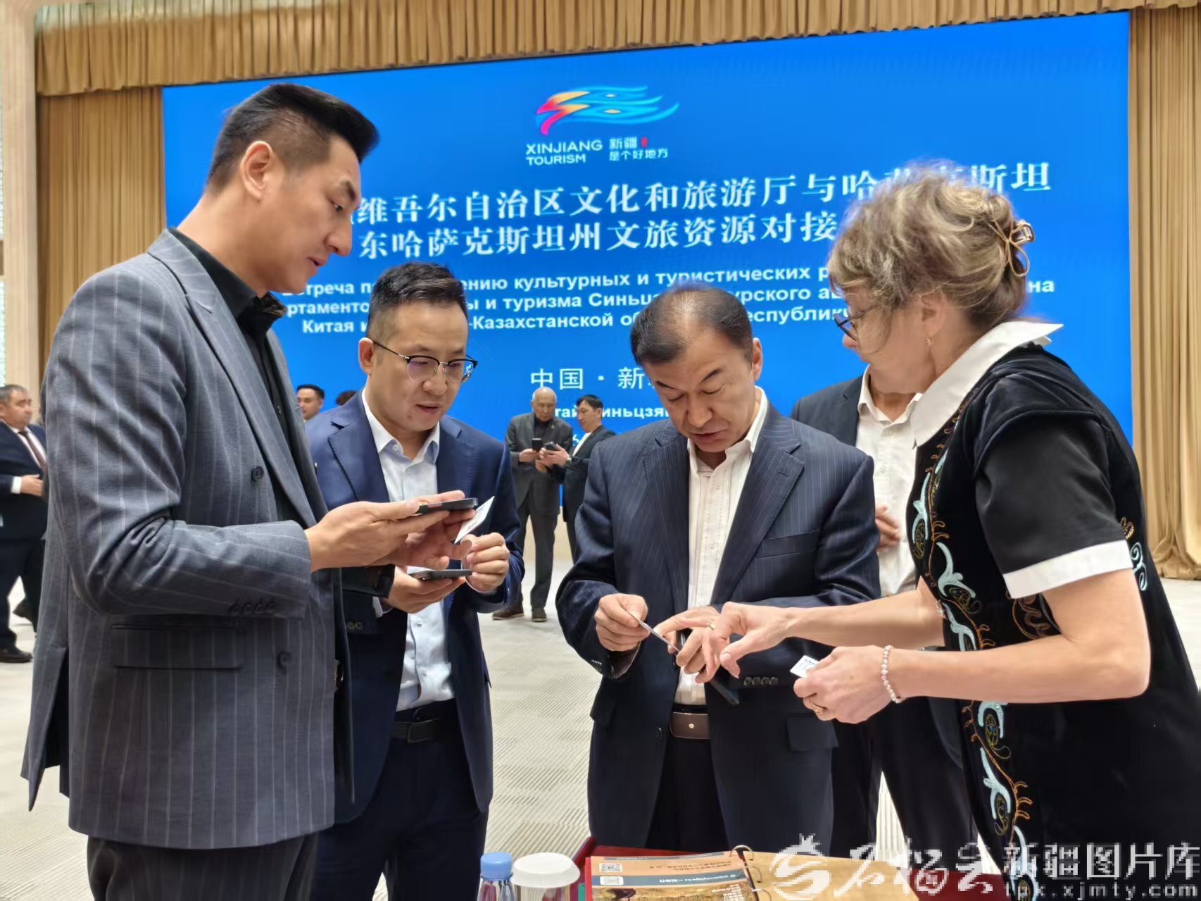 4月2日上午,文旅资源对接会后,双方参会嘉宾互留联系方式,寻找合作机会。石榴云/新疆日报记者李嘉妮摄