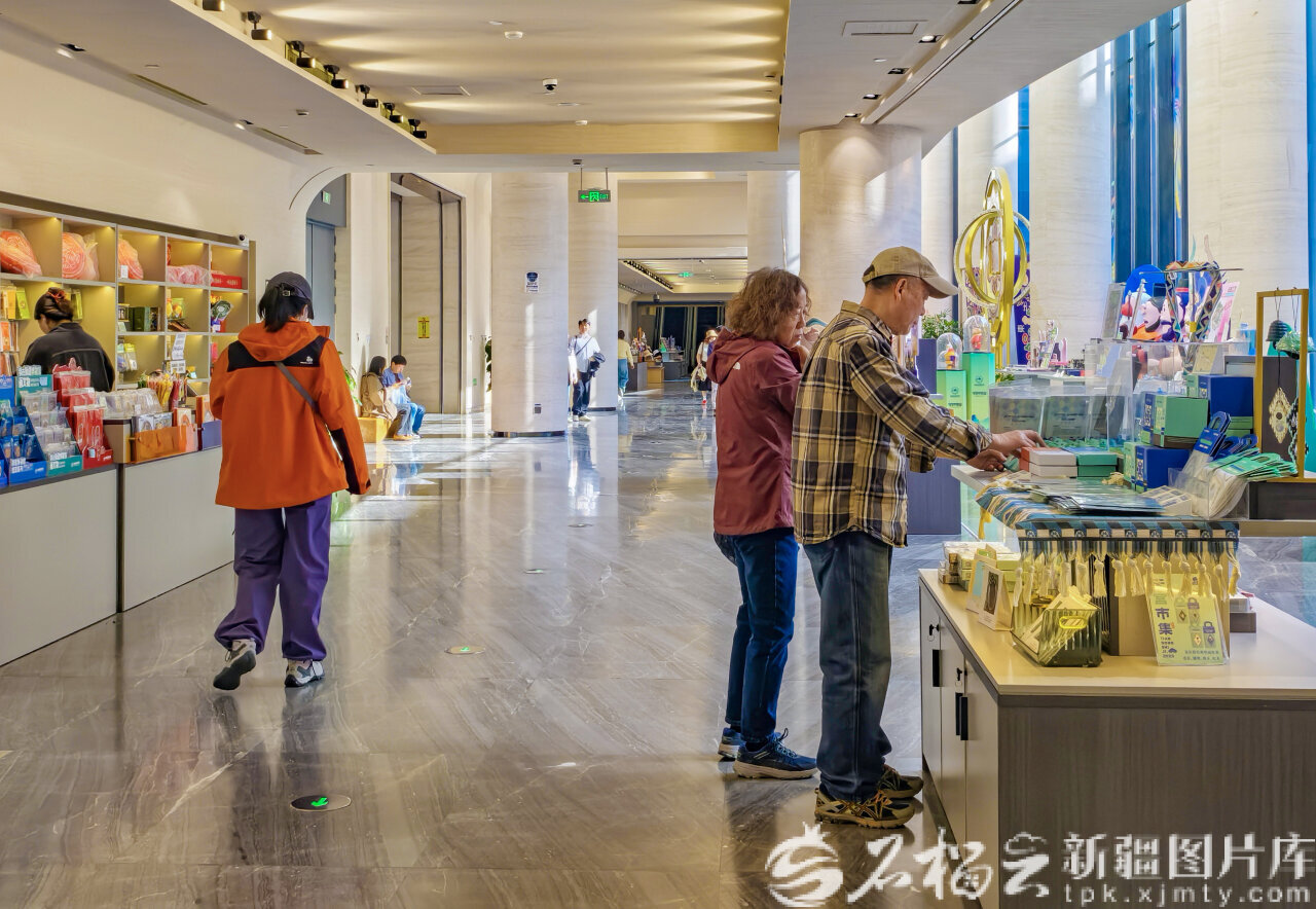 4月6日,清明假期,市民、游客在新疆博物馆“丝路印坊”文创集章区选购特色文创、打卡集章,为文化之旅留下专属纪念。
