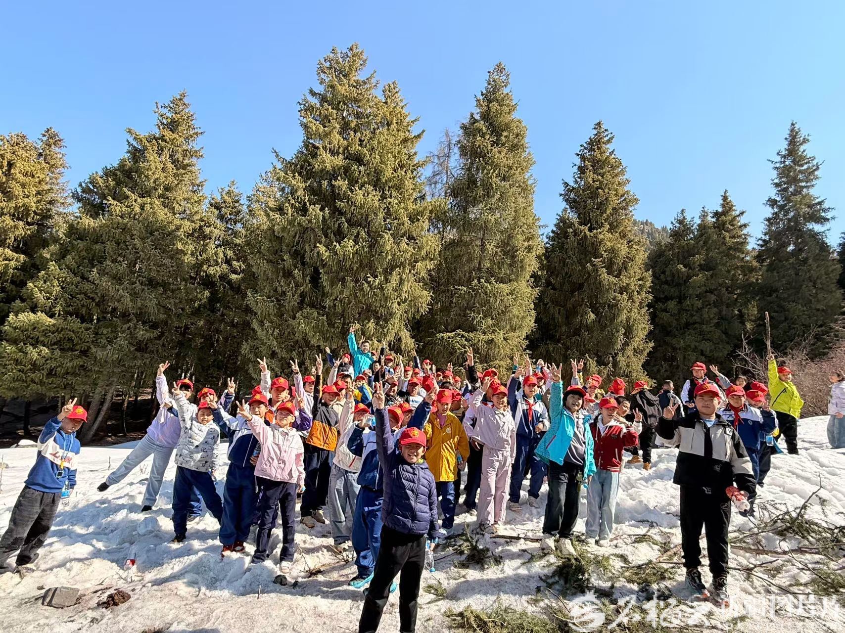 4月2日,乌鲁木齐市第七十八中学学生在南山开展研学。甄新颖摄