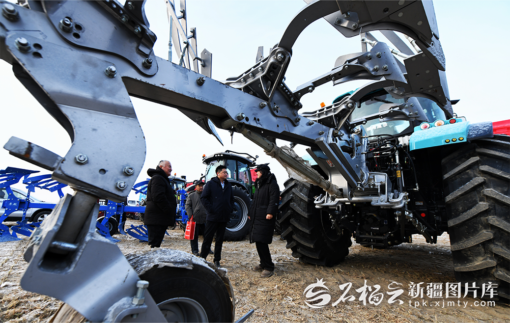 2026年1月3日,库尔勒市哈拉玉宫镇举办农业机械展销会。当地群众可享受农机购置补贴政策,选购拖拉机、无人机、旋耕机等各类农机装备。石榴云/新疆日报记者 王立华摄