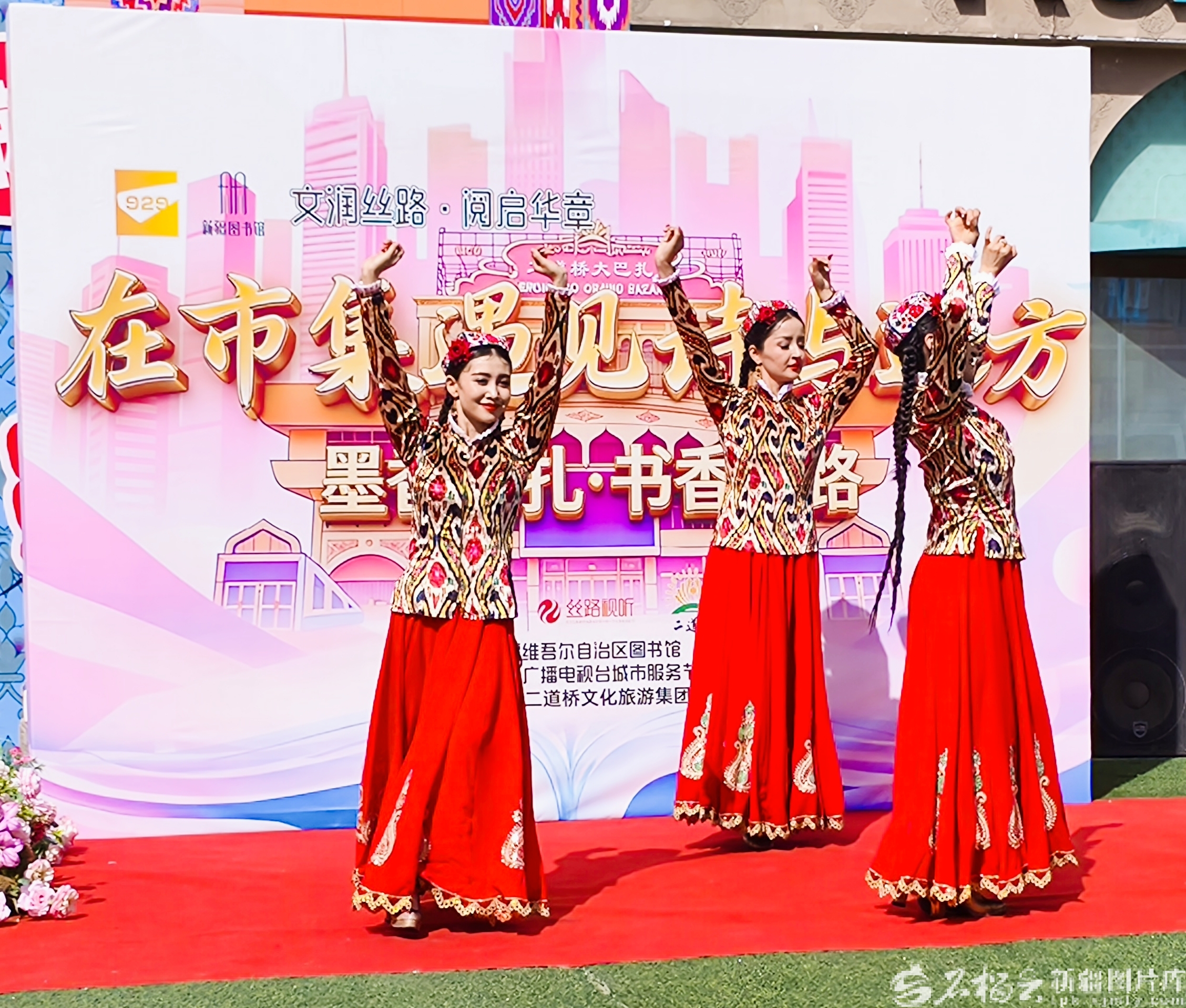 阅读快闪活动中,开场舞《欢庆》通过灵动欢快的舞步搭配热情洋溢的旋律,瞬间点燃现场氛围,引得过往游客纷纷驻足。诵读环节中,琅琅书声满是生活气息与诗意温度,让阅读成为日常的温暖陪伴。《刀郎舞》《二道桥亚克西》等民族与非遗舞蹈轮番上演,尽显新疆多元文化的独特魅力,赢得现场阵阵掌声。