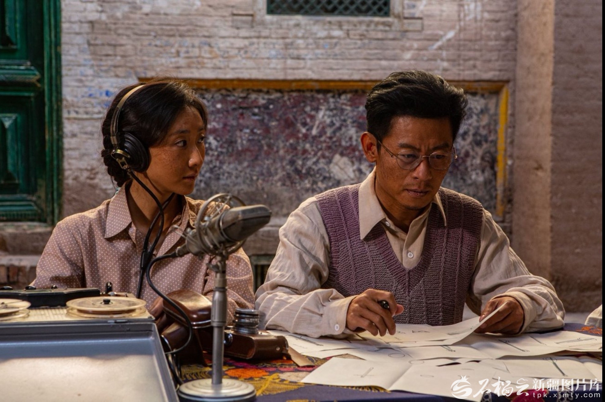 电影《万桐书》中万桐书(右)和连晓梅记谱。天山电影制片厂提供