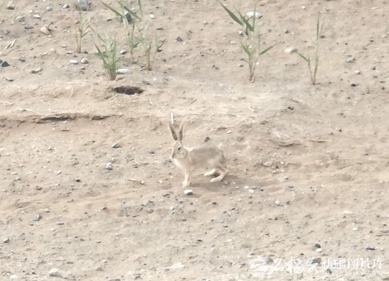 4月17日,记者在莎车县中水库生态林基地用手机拍摄到一只野兔。天山网-新疆日报记者 曹华摄