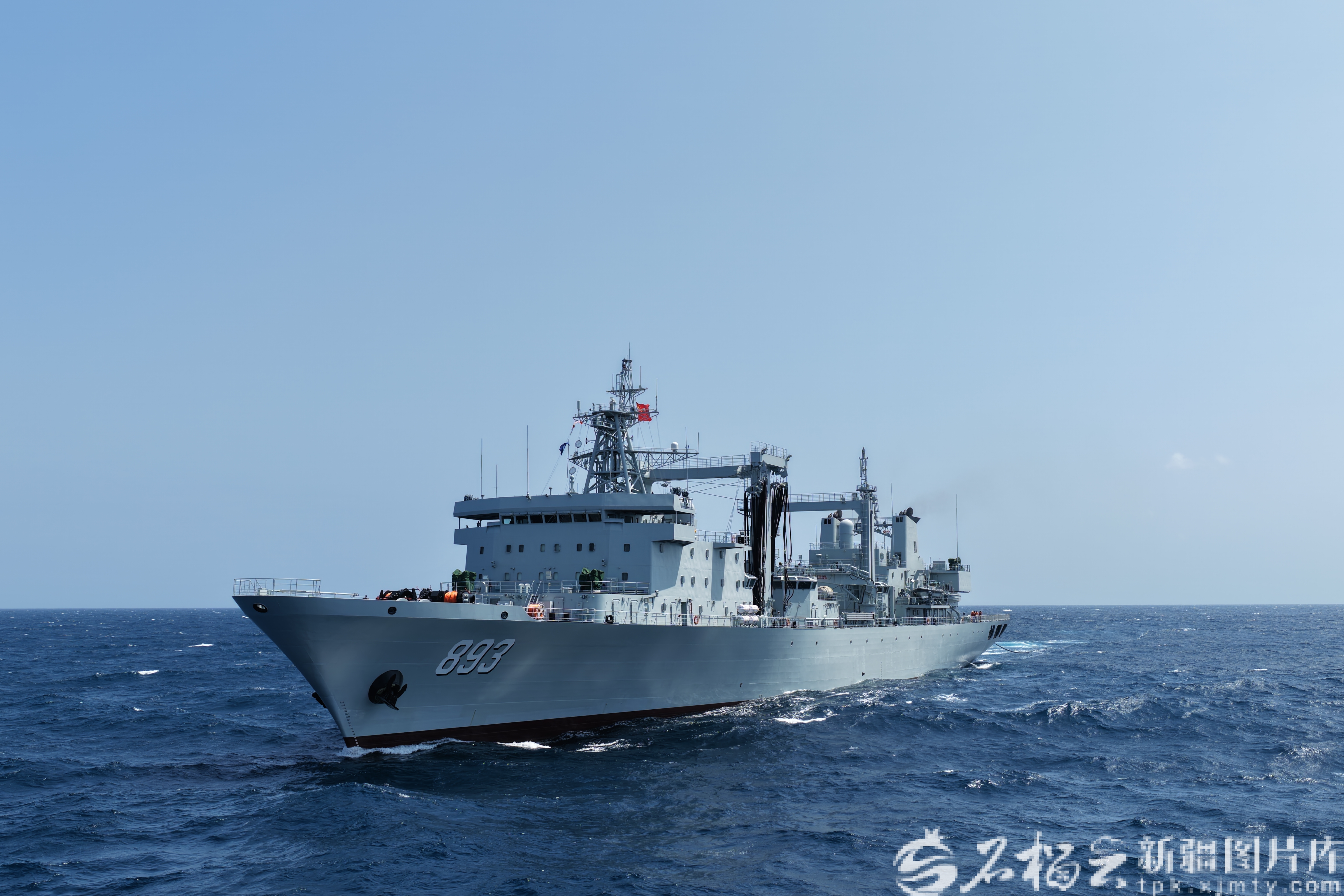 海军乌伦古湖舰,舷号893,系我国自主研发建造903型综合补给舰,满载排水量2万余吨。具备横向、纵向、垂直三向补给能力,可同时为多艘舰艇实施燃油、淡水、雷弹、干货物资补给,是远洋作战、护航巡逻、联演联训的重要保障力量。
