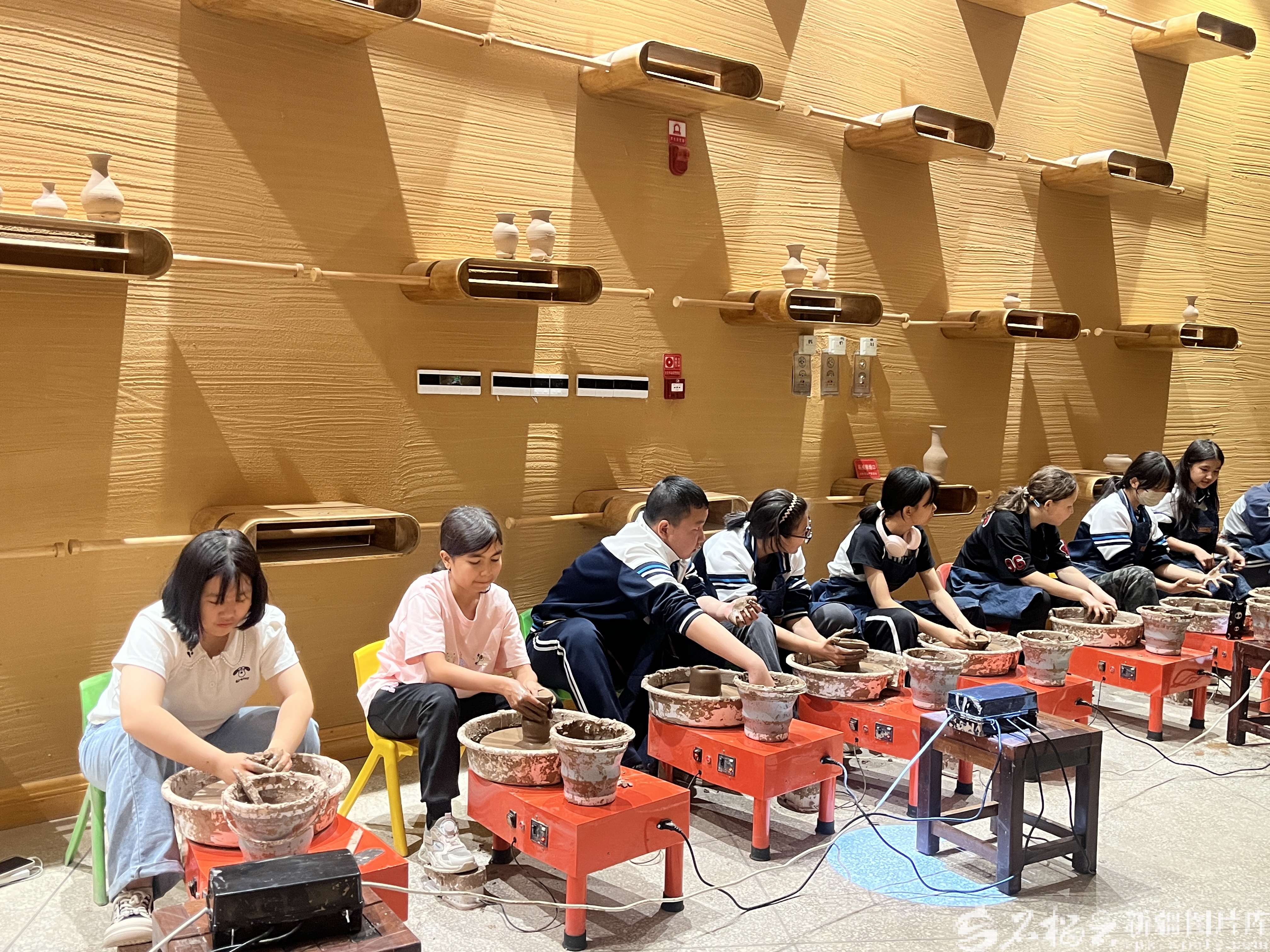 喀什市,非遗研学团的青少年体验土陶制作。阿力木江·阿卜杜合力力 摄