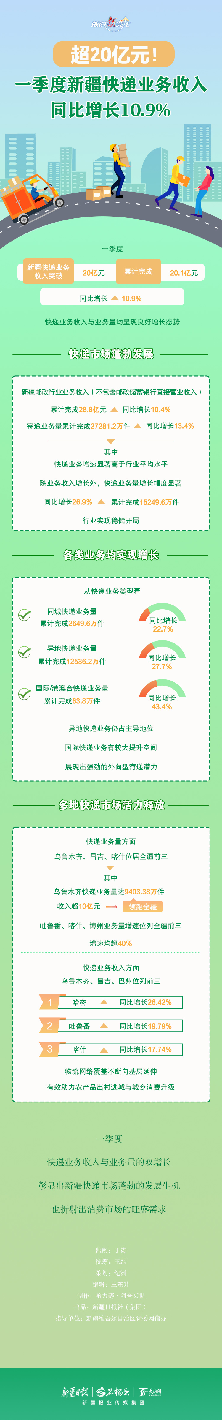 数说“新”变化|超20亿元! 一季度新疆快递业务收入同比增长10.9%