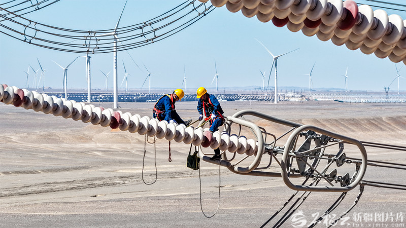4月4日,新疆送变电公司员工在±800千伏天中线开展玻璃绝缘子更换作业。通讯员 马叶叶摄