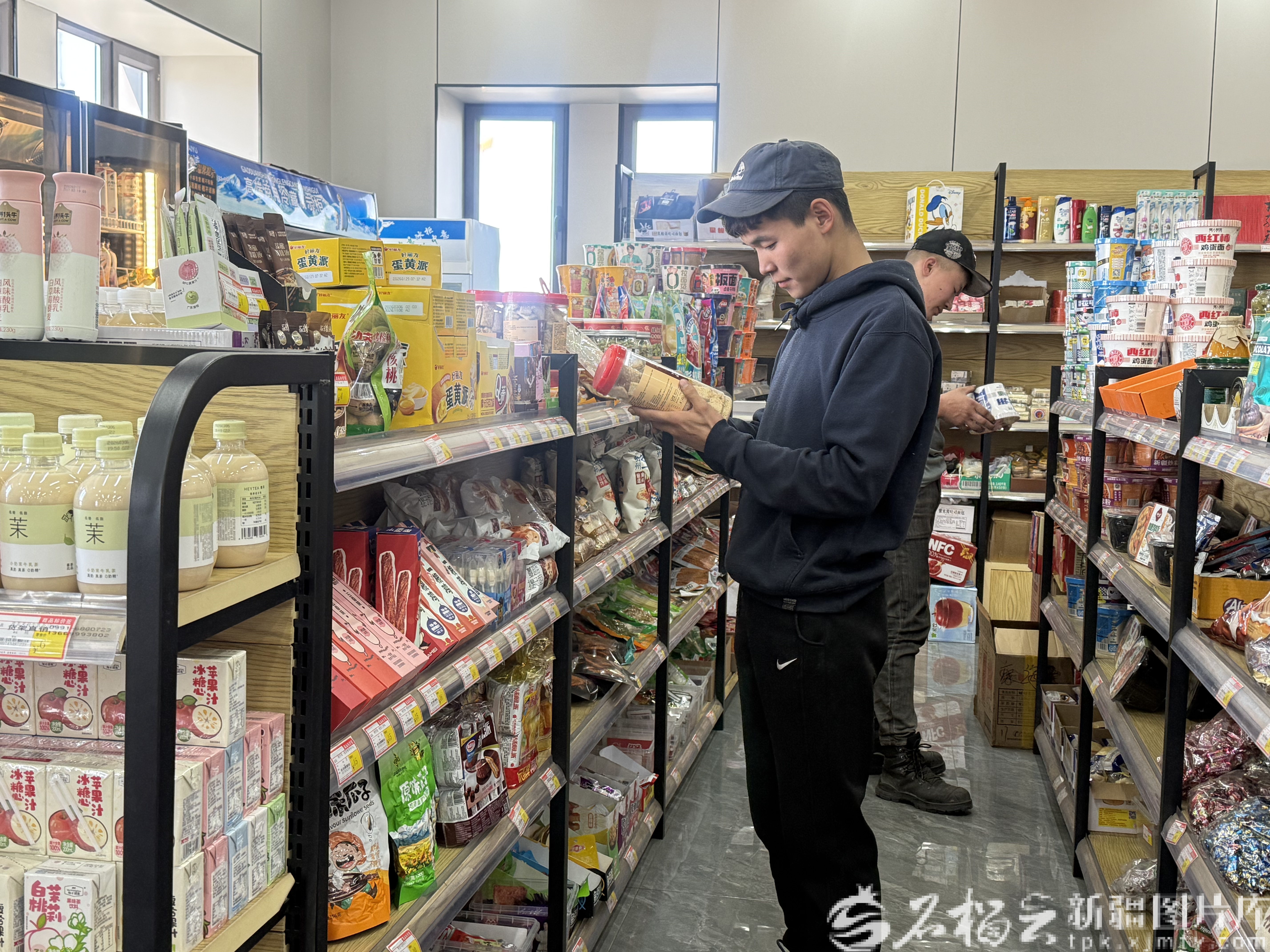 4月22日,塔克什肯口岸国际“司机之家”,蒙古国司机巴·恩克塞汗在挑选自己喜欢的商品。天山网-新疆日报记者 郭倩摄