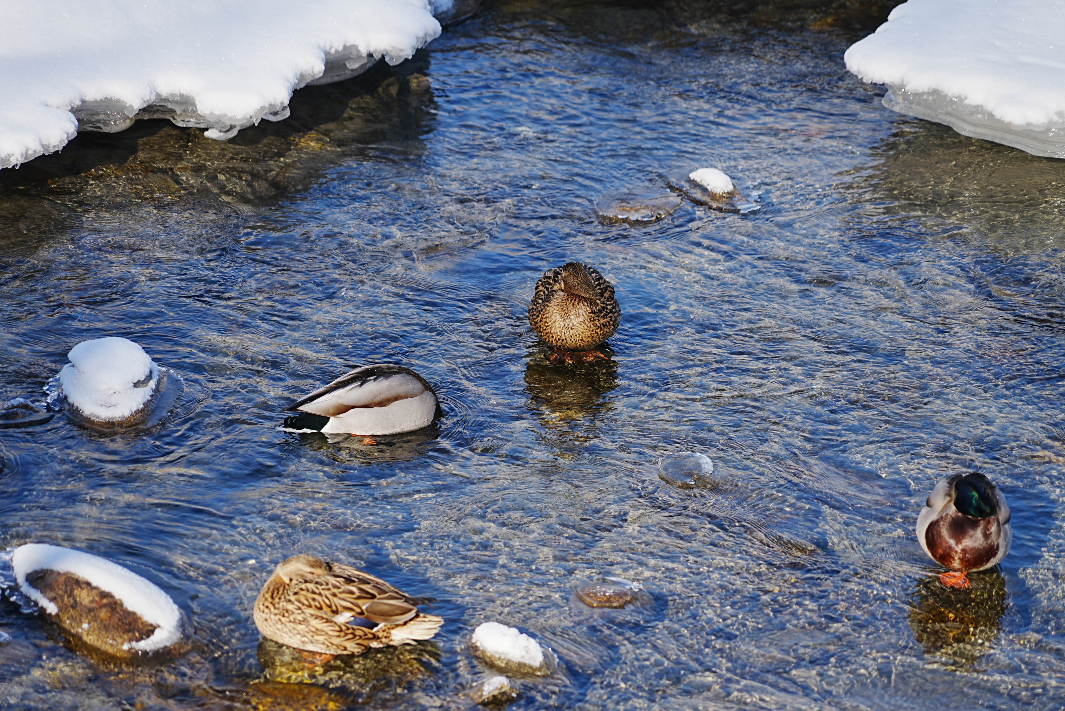 3月4日,新疆阿勒泰市的克兰河畔,冬意未尽,冰雪尚未完全消融。碧波微漾的河水中,三五成群的野鸭静静休憩。白雪点缀河岸,冰层映着天光,绿头鸭穿梭其间,宛如一幅生动的“寒鸭戏水图”,为这条穿城而过的河流增添了几分早春的意趣。