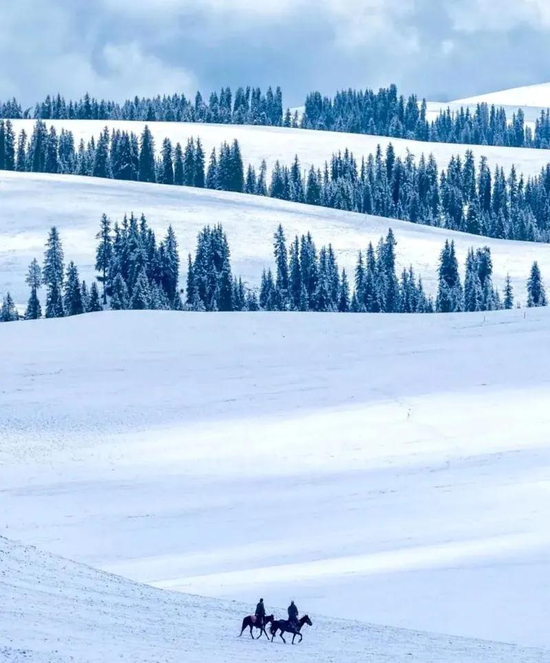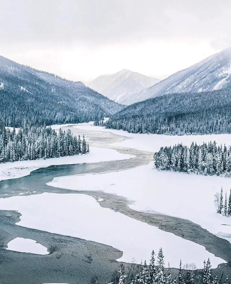 喀纳斯初冬的晨雾,像是惺忪的睡眼,朦朦胧胧;禾木的白桦林,随着潺潺流水,在风中浮动。