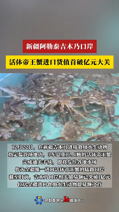 新疆阿勒泰吉木乃口岸活体帝王蟹进口货值首破亿元大关