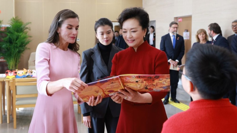 彭丽媛同西班牙王后莱蒂西娅参观北京市残疾人服务示范中心