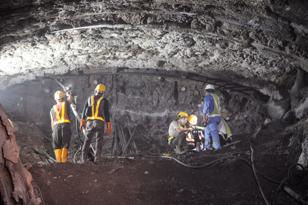 2022年1月28日,在印度尼西亚西爪哇省普哇加达县,工作人员在雅万高铁2号隧道内作业。