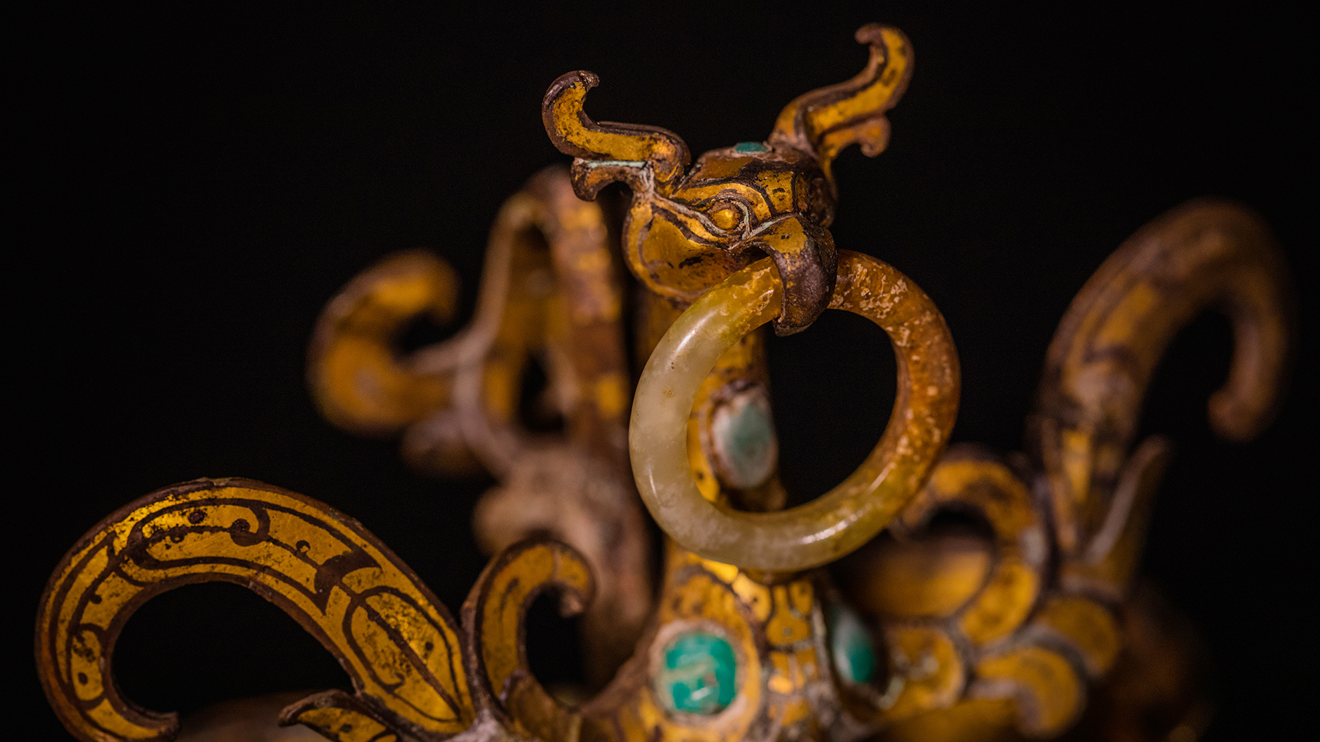 镶嵌在预先铸好或錾刻的纹饰沟槽中