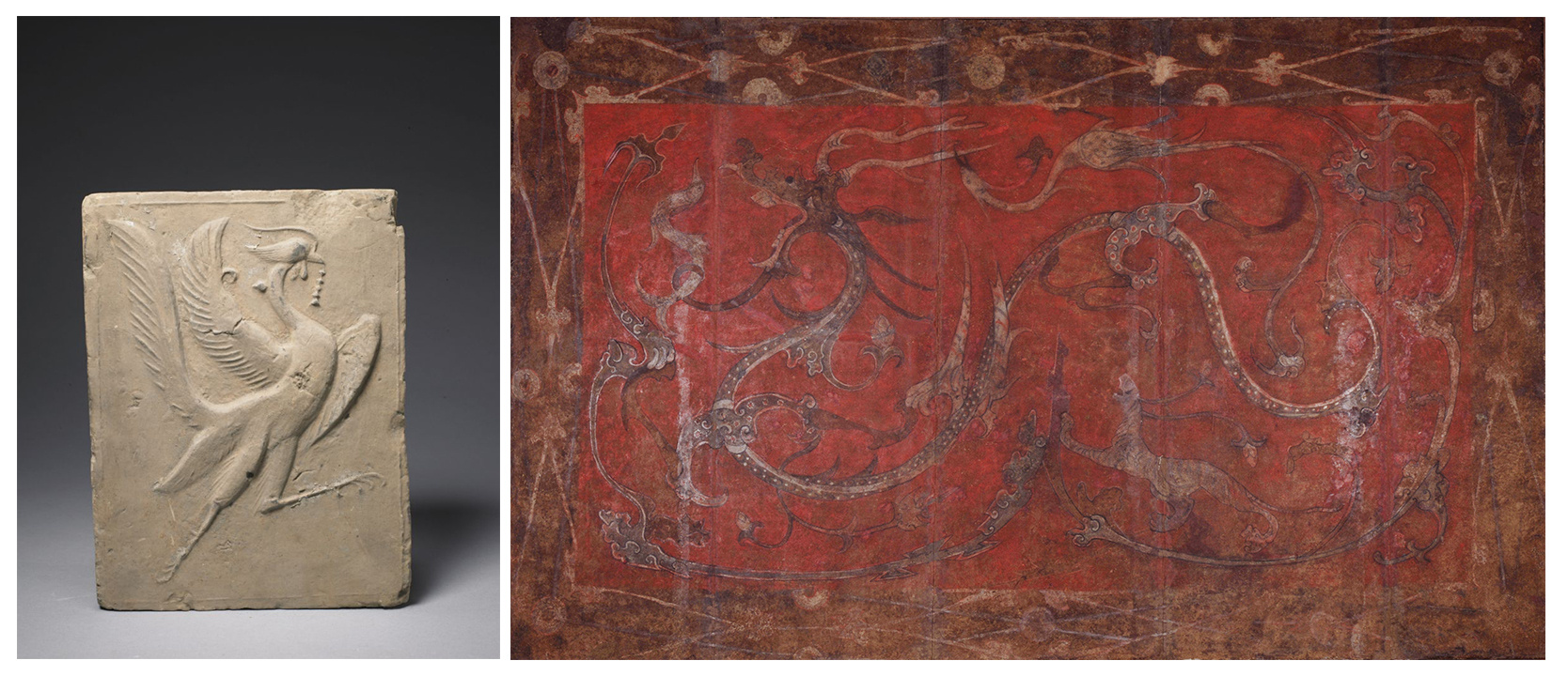 △左:朱雀纹砖,故宫博物院藏。右:四神云气图,河南博物院藏。