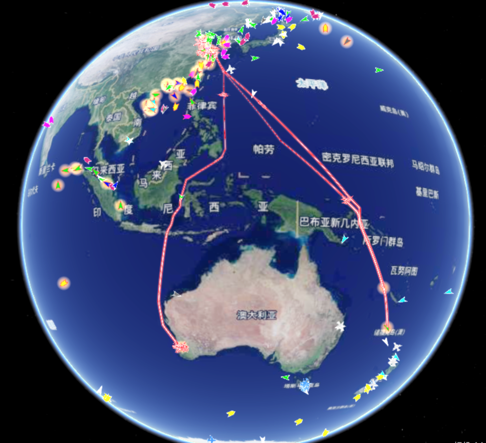 截至11月15日,“雪龙”号、“雪龙2”号和“天惠”轮货船航行轨迹。(武汉大学中国南极测绘研究中心供图)