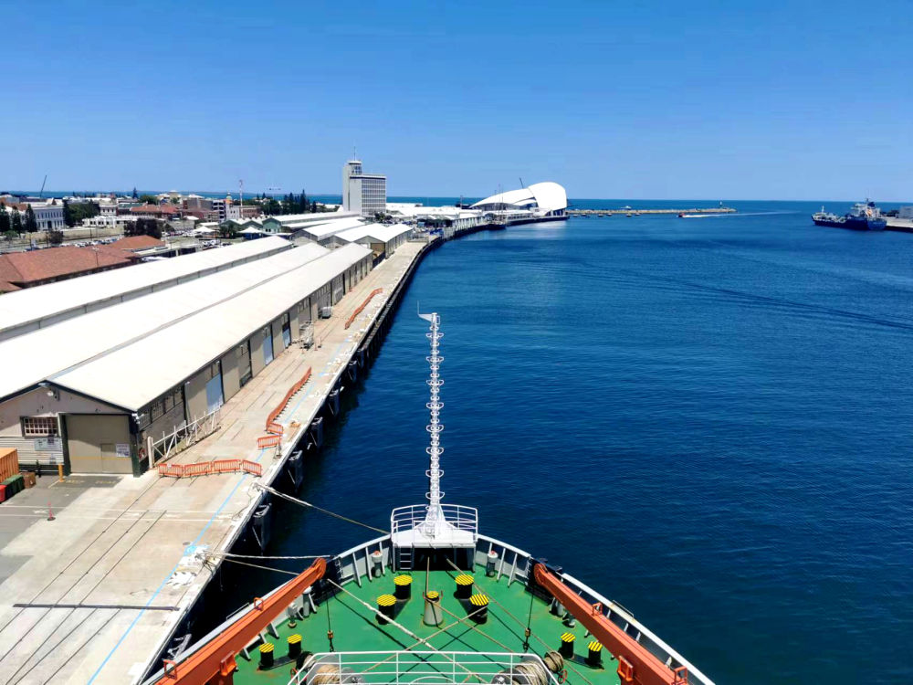 11月15日,“雪龙”号停泊在澳大利亚弗里曼特尔码头。(中国第40次南极考察队供图)
