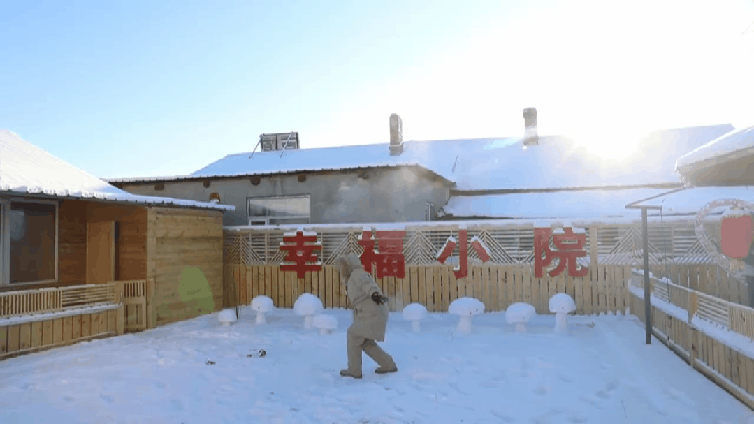 中午,民宿经营者史瑞娟趁着客人们休息,给雪人上色。今年冬天,史瑞娟在家门口堆了两个大雪人,还把小院重新布置了一番。效果挺明显,几乎天天满房。