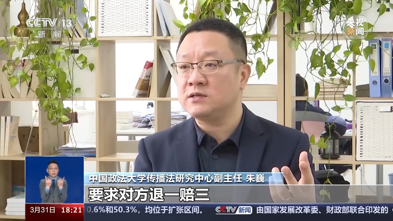 中国政法大学传播法研究中心副主任 朱巍:普通消费者如果购买的话,它既可以按照食品安全法,要求违法宣传者去承担十倍赔偿的责任。同时,也可以按照消费者权益保护法的规定,要求对方退一赔三,这里涉及欺诈。