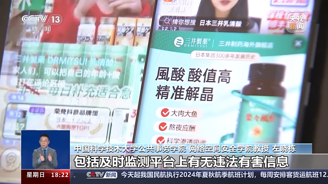 中国科学技术大学公共事务学院、网络空间安全学院教授 左晓栋:我国多部法律法规都对平台应当承担的信息内容、安全管理责任提出了要求,包括及时监测平台上有无违法有害信息。对于主播发布的言论,平台当然应当主动监测。而且如果发现违规行为应当及时处理,特别是对于有些主播混淆药品和食品保健品的行为,这个属于明确违反法律规定的,应当及时处置。如果平台应知或明知平台上有这样的信息而没有及时处置,平台要承担相应的连带责任。