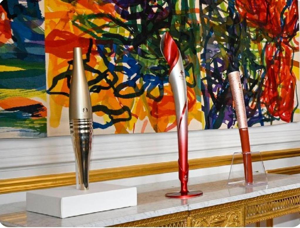 这是习近平主席同马克龙总统会谈前,两国元首夫妇互赠的礼品之一。习近平主席赠送给马克龙总统的是北京双奥火炬,马克龙总统则以巴黎奥运火炬回赠。