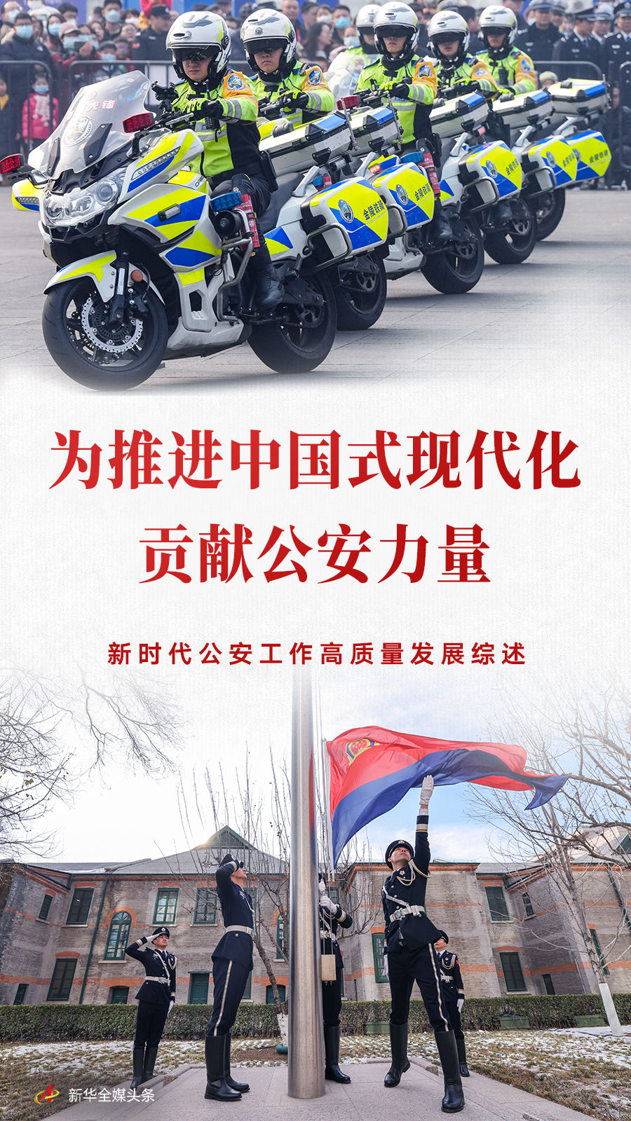 全国公安机关忠诚履行职责使命,奋力推进公安工作现代化,为强国建设、民族复兴伟业创造安全稳定政治社会环境,为全面推进中国式现代化建设贡献公安力量。