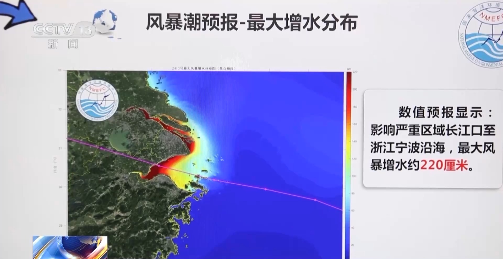 国家海洋环境预报中心风暴潮预报室预报组组长 傅赐福:由于台风的路径还存在一定的不确定性,如果叠加在天文高潮,我们也会适时的调整预警级别,有可能升级到橙色或者是红色。我们也提醒相关的公众跟当地政府,要做好长江口、杭州湾地区的低洼地区防潮的准备。