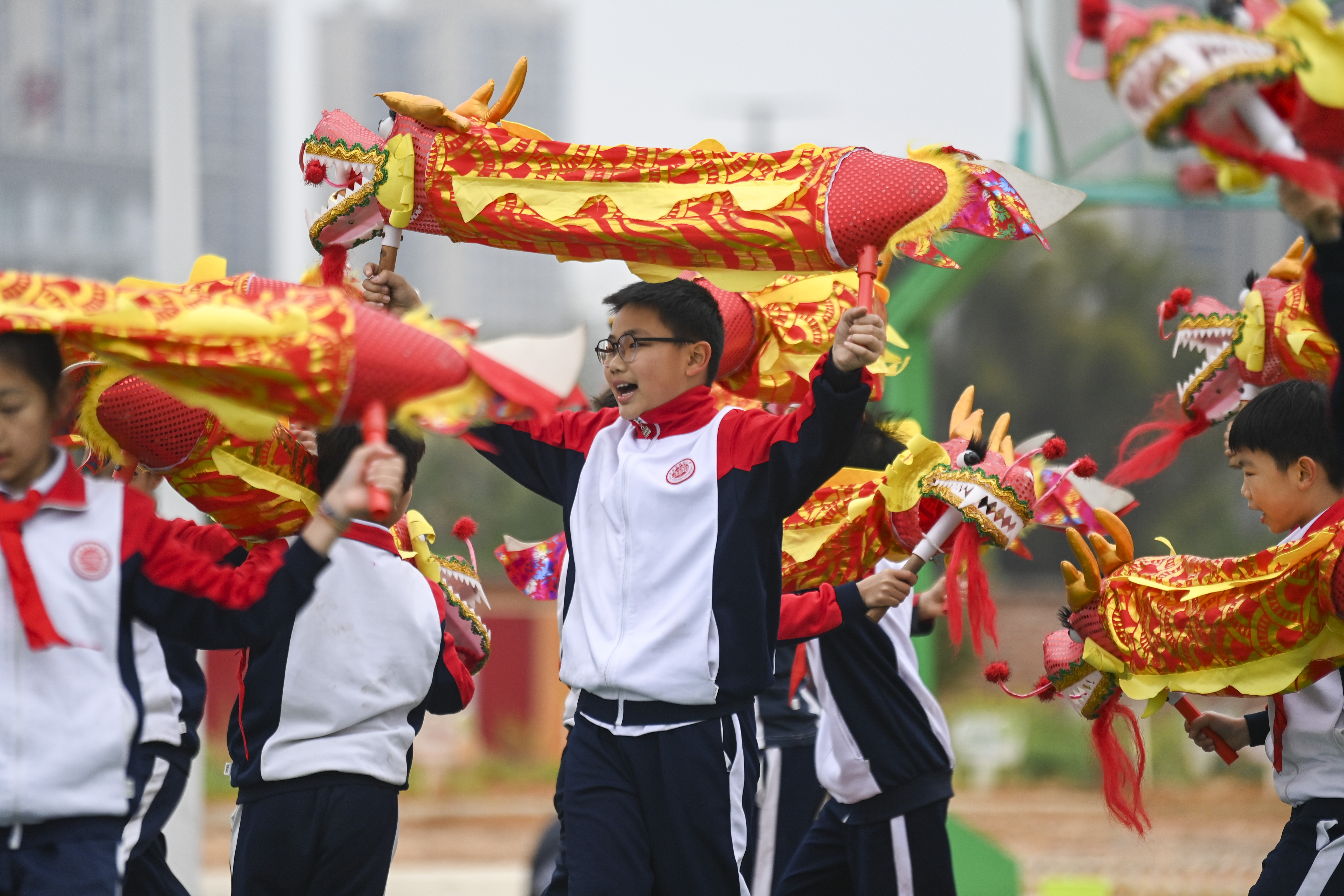舞龙、舞狮、武术、抛纸飞机等体育运动项目