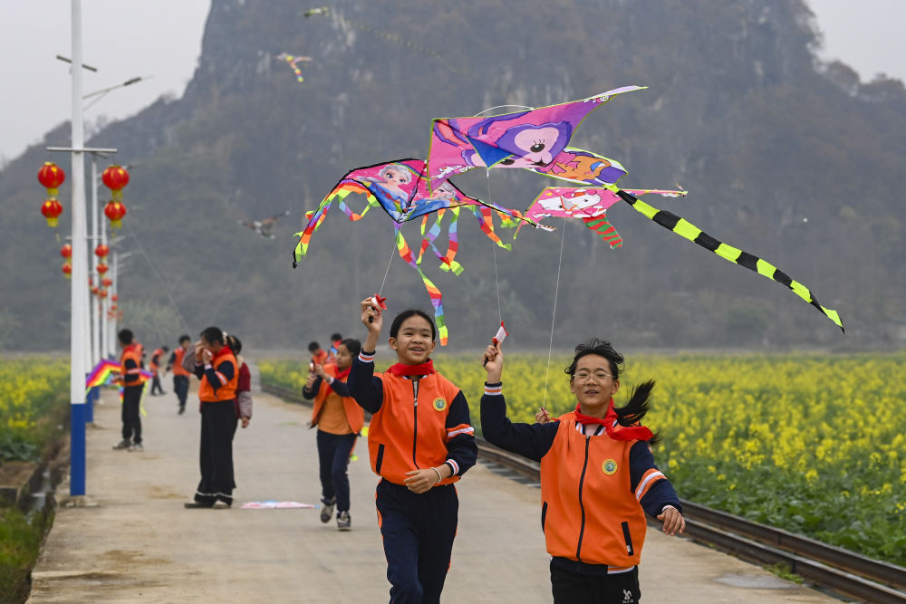 机耕路上放风筝……