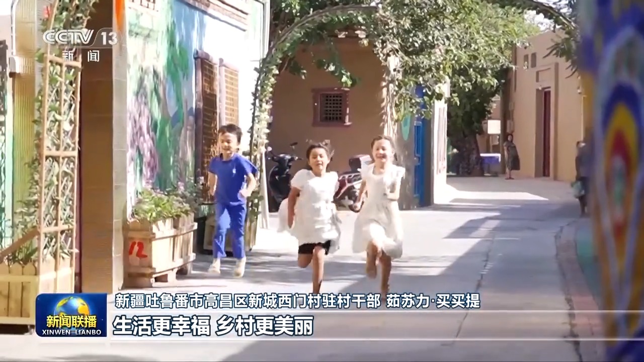 新疆吐鲁番市高昌区新城西门村驻村干部 茹苏力·买买提:总书记关心我们新疆的发展,给我们讲话的时候提出三句话,推动实现农村更富裕、生活更幸福、乡村更美丽。西门村的变化也是党中央的大力支持,特别是总书记的关心关怀。感恩党中央,感恩总书记。
