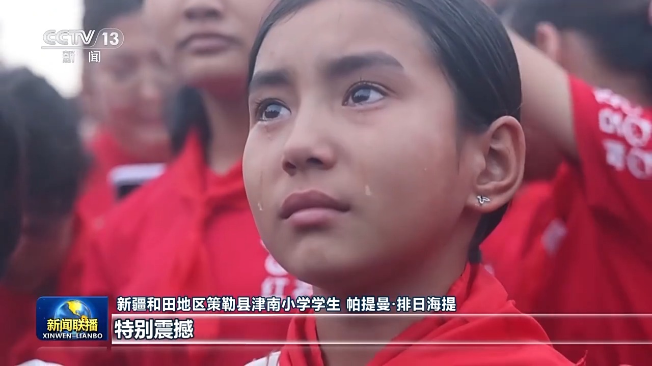 新疆和田地区策勒县津南小学学生 帕提曼·排日海提:这是我第一次在天安门广场亲眼看到升国旗,特别震撼。