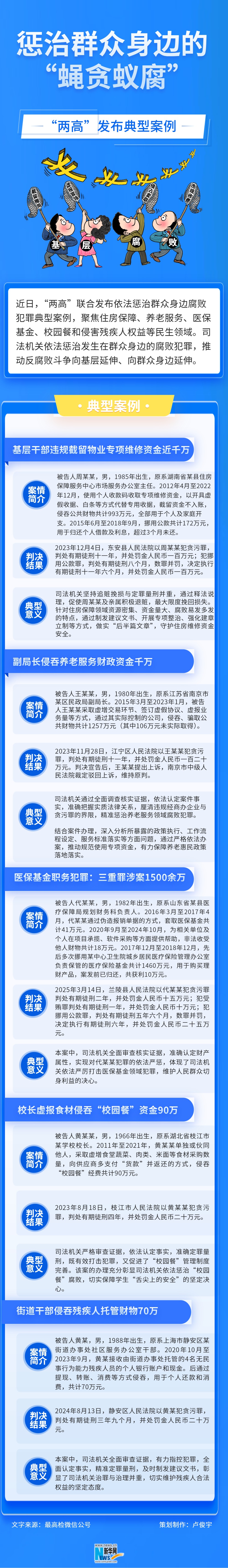 “两高”发布典型案例 惩治群众身边的“蝇贪蚁腐”
