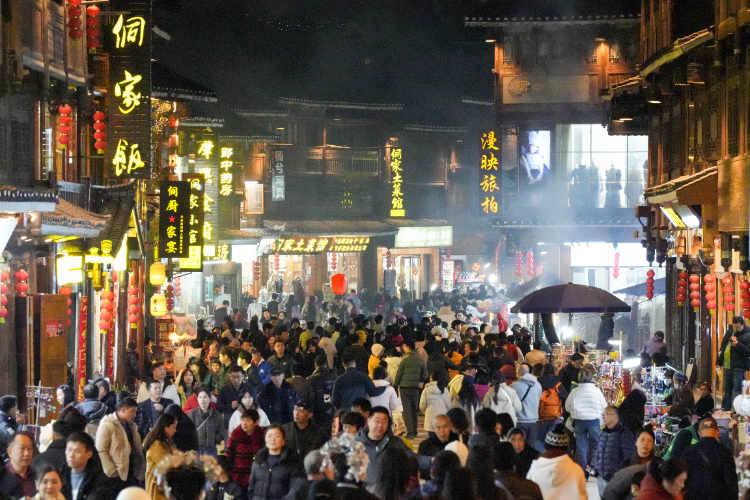2026年2月19日,游客在贵州省黎平县肇兴侗寨游玩。新华社发(龙建睿摄)