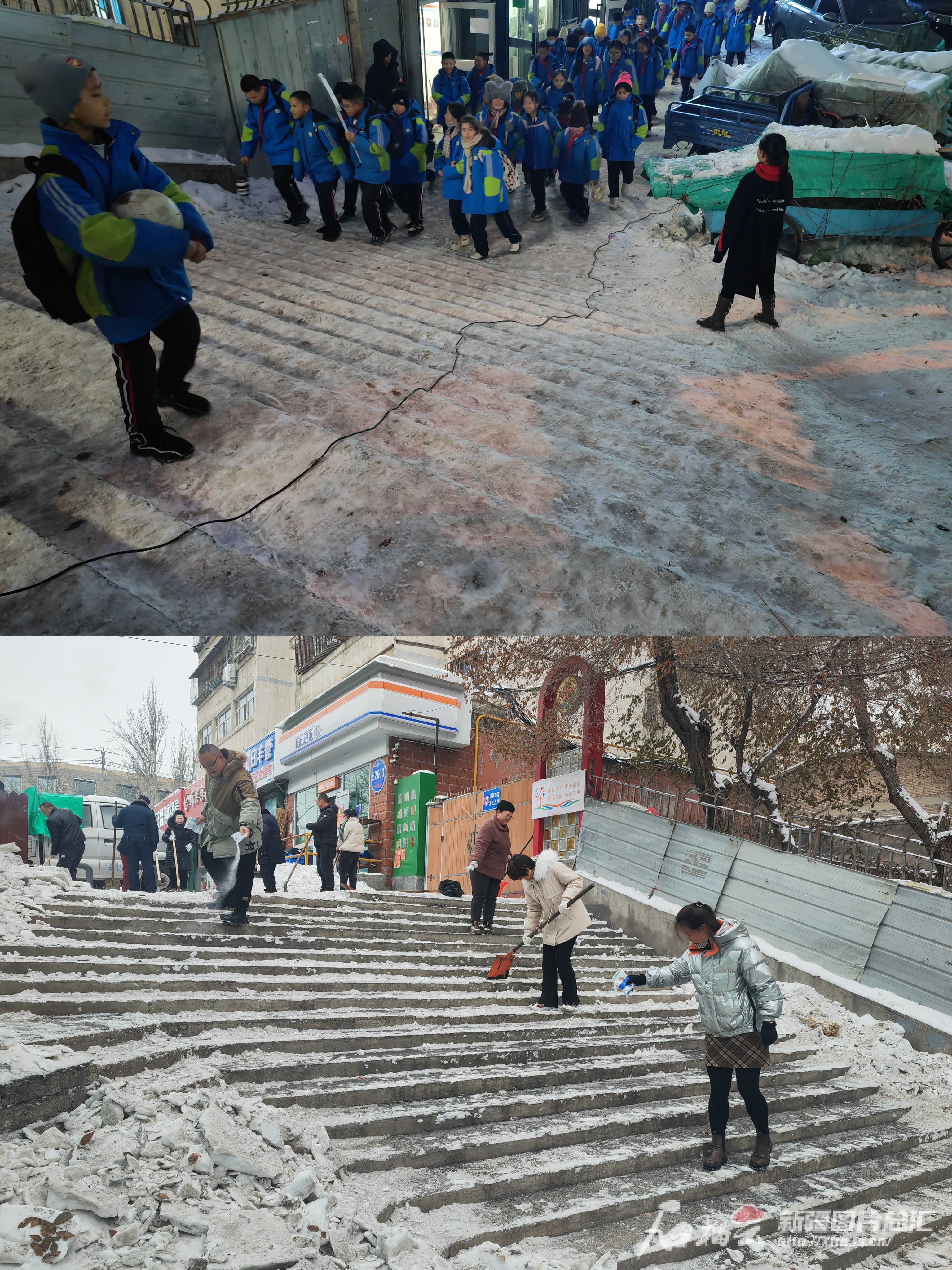 记者帮办丨学生必经之路成冰面 乌市水磨沟区这段楼梯已经清扫了