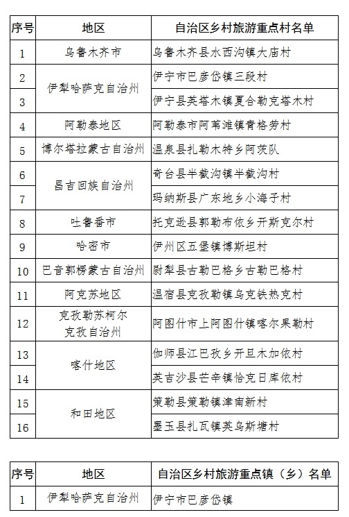 第五批自治区乡村旅游重点村镇名录