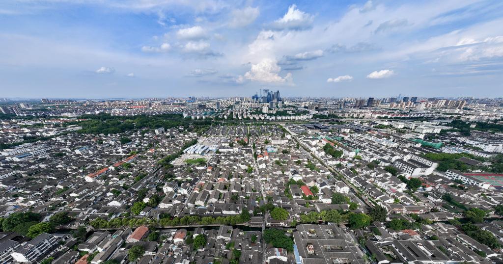 近日拍摄的苏州平江历史文化街区(无人机照片)。新华社记者 李博 摄