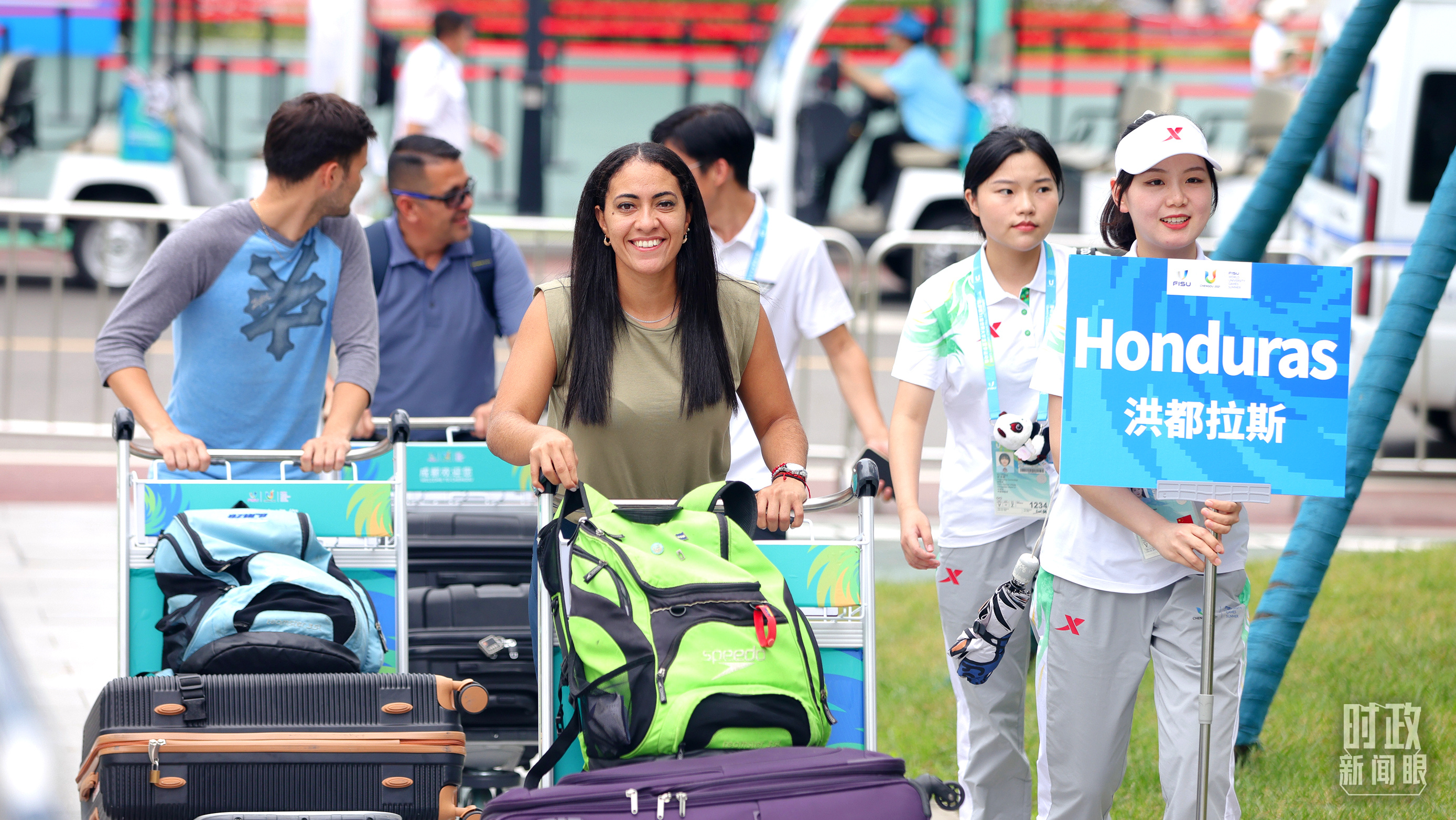 △各国代表团成员相继抵达成都大运村。(总台央视记者魏帮军拍摄)