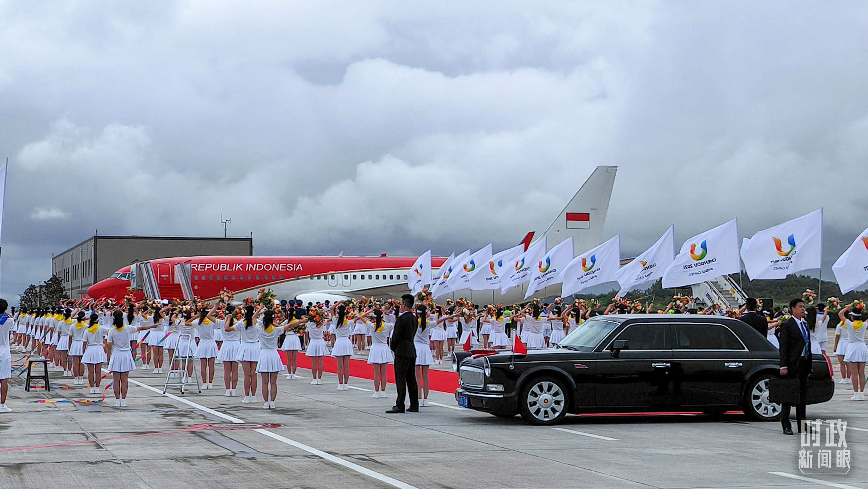 △7月27日下午,印尼总统佐科抵达成都。(总台央视记者王子杭拍摄)