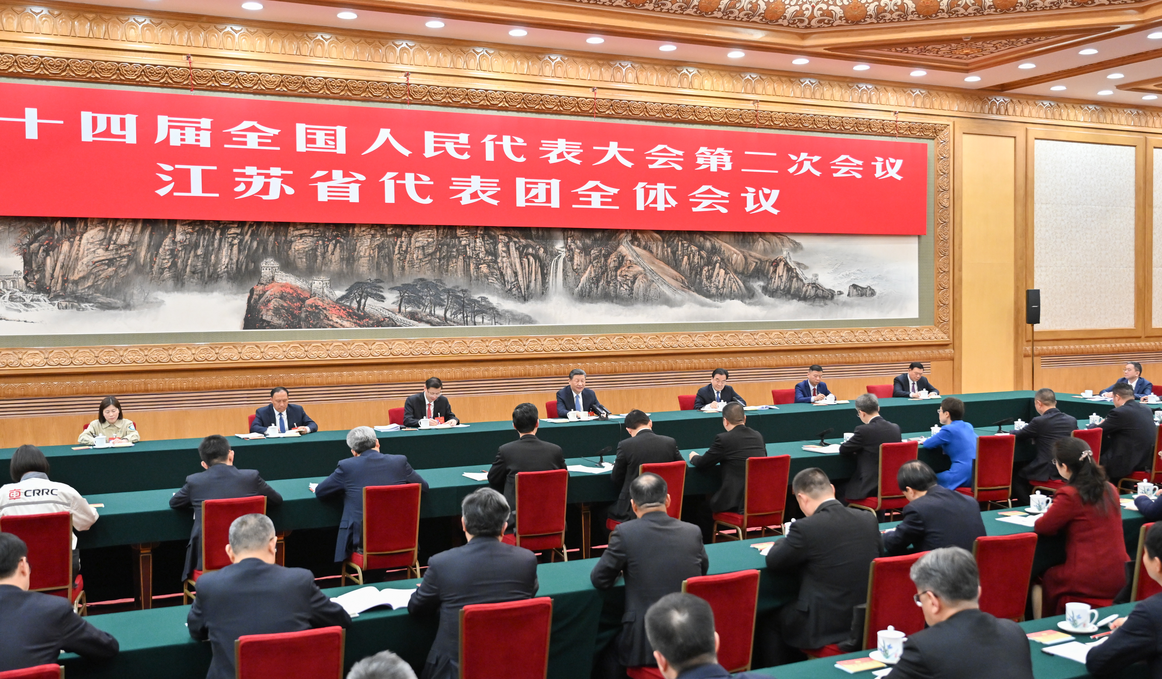 3月5日下午,人民大会堂东大厅,暖意浓浓。习近平总书记来到这里,参加他所在的十四届全国人大二次会议江苏代表团审议。