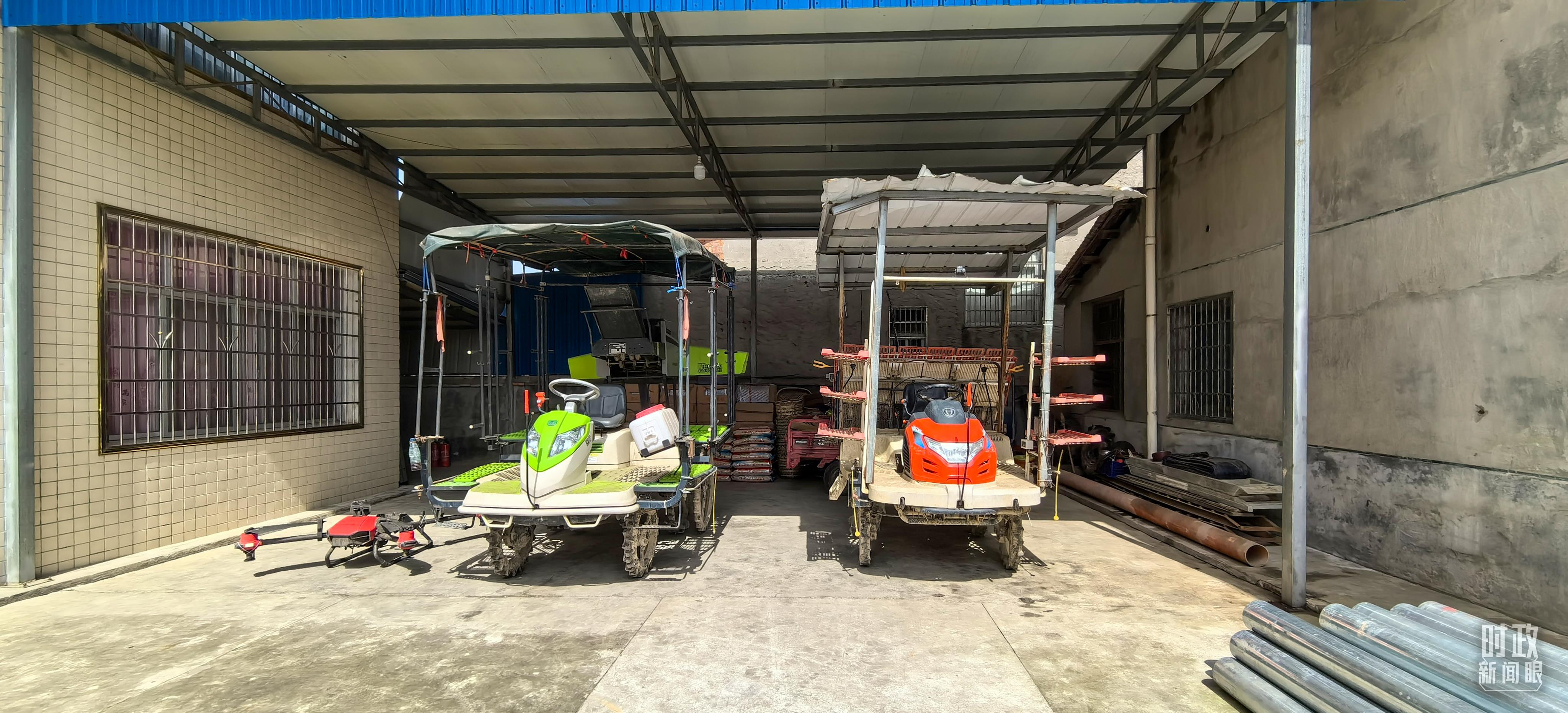 △港中坪村种粮大户家里的农机具。(总台央视记者马超拍摄)