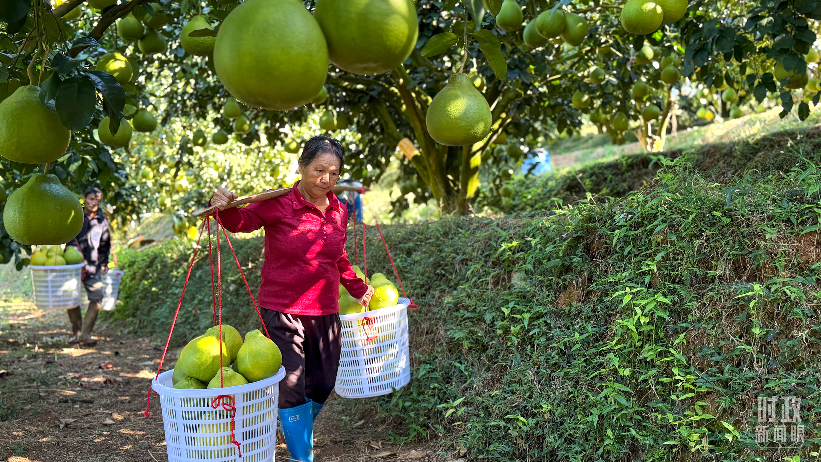 △南福金柚种植基地,柚林迎来丰收。(总台记者吴媚苗、总台央视记者鄂介甫拍摄)