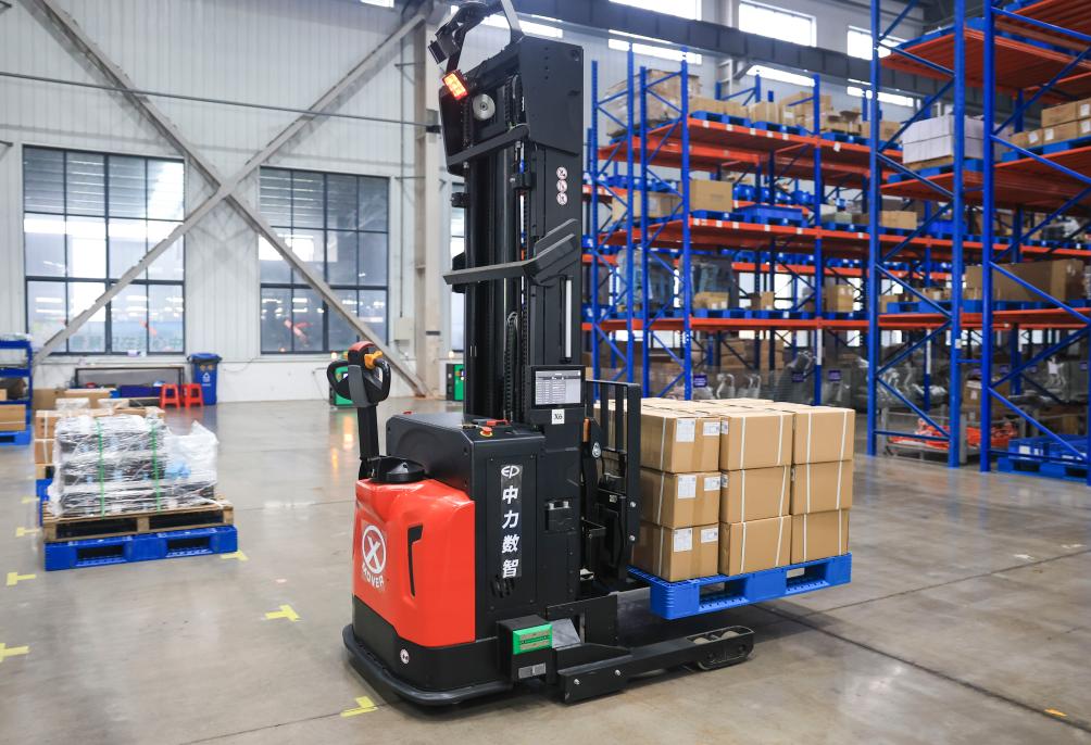 江苏中力叉车有限公司的厂房里,一辆辆搬运叉车平稳地穿梭于厂区、货架间,只走一遍规划路径就能自动记忆路线,实现无人化智能搬运——这是企业最新研发的产品,给叉车装上了“AI大脑”。