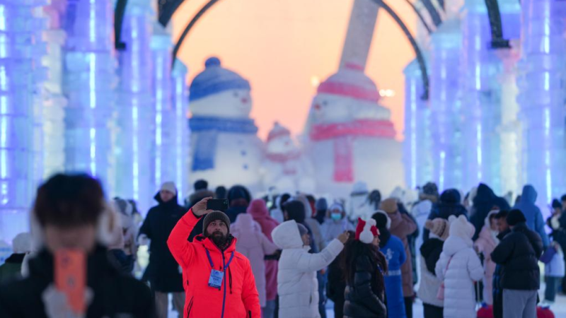 冰雕艺术添彩“冰城”冬日冰雪画卷
