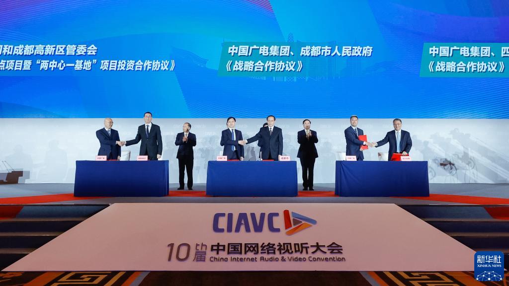 3月30日,在第十届中国网络视听大会开幕式上,各方代表签署相关合作协议。新华社记者 沈伯韩 摄