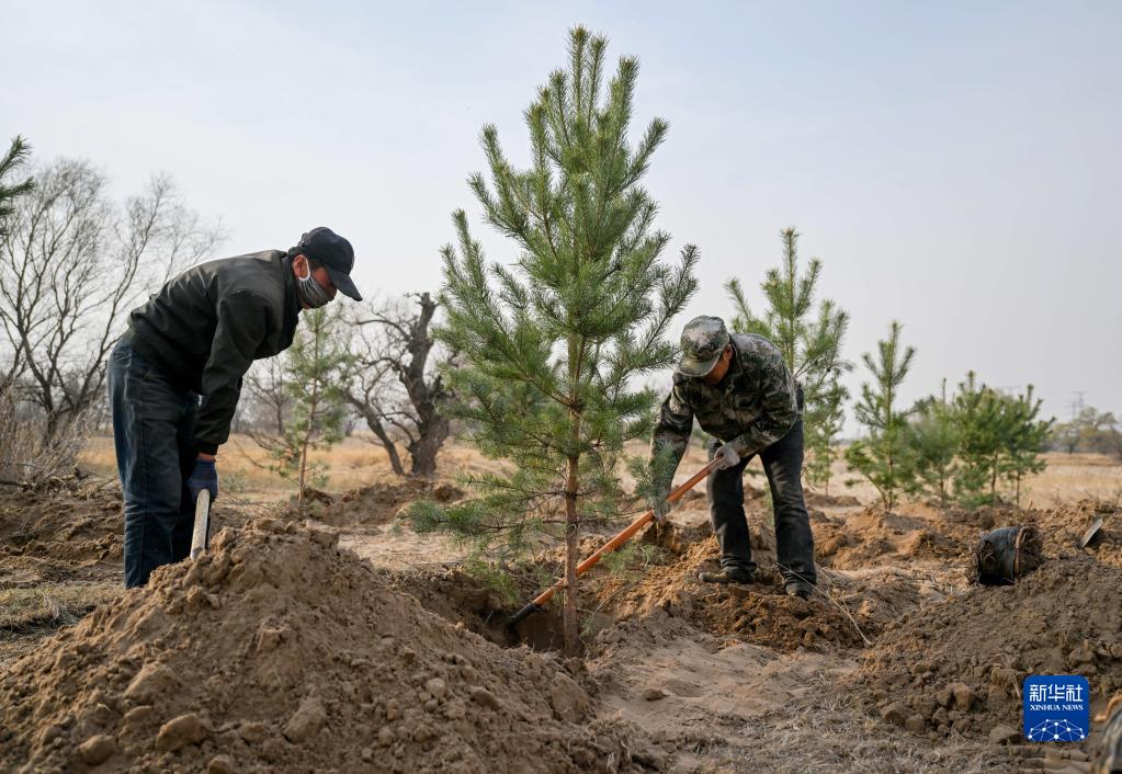 近日,在内蒙古通辽市科尔沁左翼后旗,治沙工人忙着植树造林,给科尔沁沙地披上“绿装”。科尔沁沙地横跨内蒙古、吉林、辽宁三省区,沙地面积7760万亩,在内蒙古通辽市境内占52.7%。近年来,依托“三北”防护林、退耕还林、公益林保护等重点生态工程,内蒙古通辽市不断加大植树造林、草原修复和生态保护力度,科尔沁沙地生态环境得到改善。