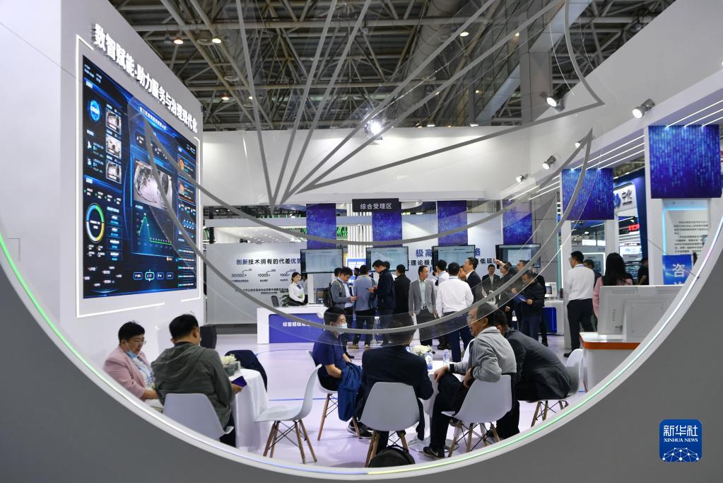 4月26日在第六届数字中国建设成果展览会上拍摄的数智赋能·助力服务与治理现代化展区一景。新华社记者 魏培全 摄