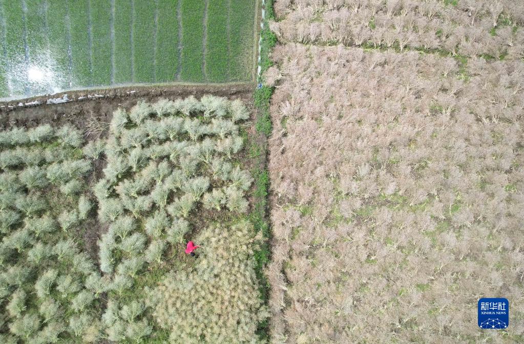 5月16日,村民在贵州省黔东南苗族侗族自治州施秉县城关镇上翁哨村收割油菜(无人机照片)。近日,施秉县各乡镇种植的5.7万亩油菜陆续进入收割期。新华社发(磨桂宾摄)